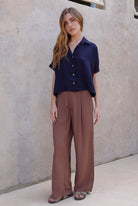 Ligera, fresca y naturalmente elegante. La Blusa Fika está diseñada para mujeres que buscan comodidad sin renunciar al estilo. Su silueta amplia y caída fluida aporta movimiento y sofisticación, mientras el cuello camisero y los botones frontales en tono natural le dan un toque sutilmente estructurado.