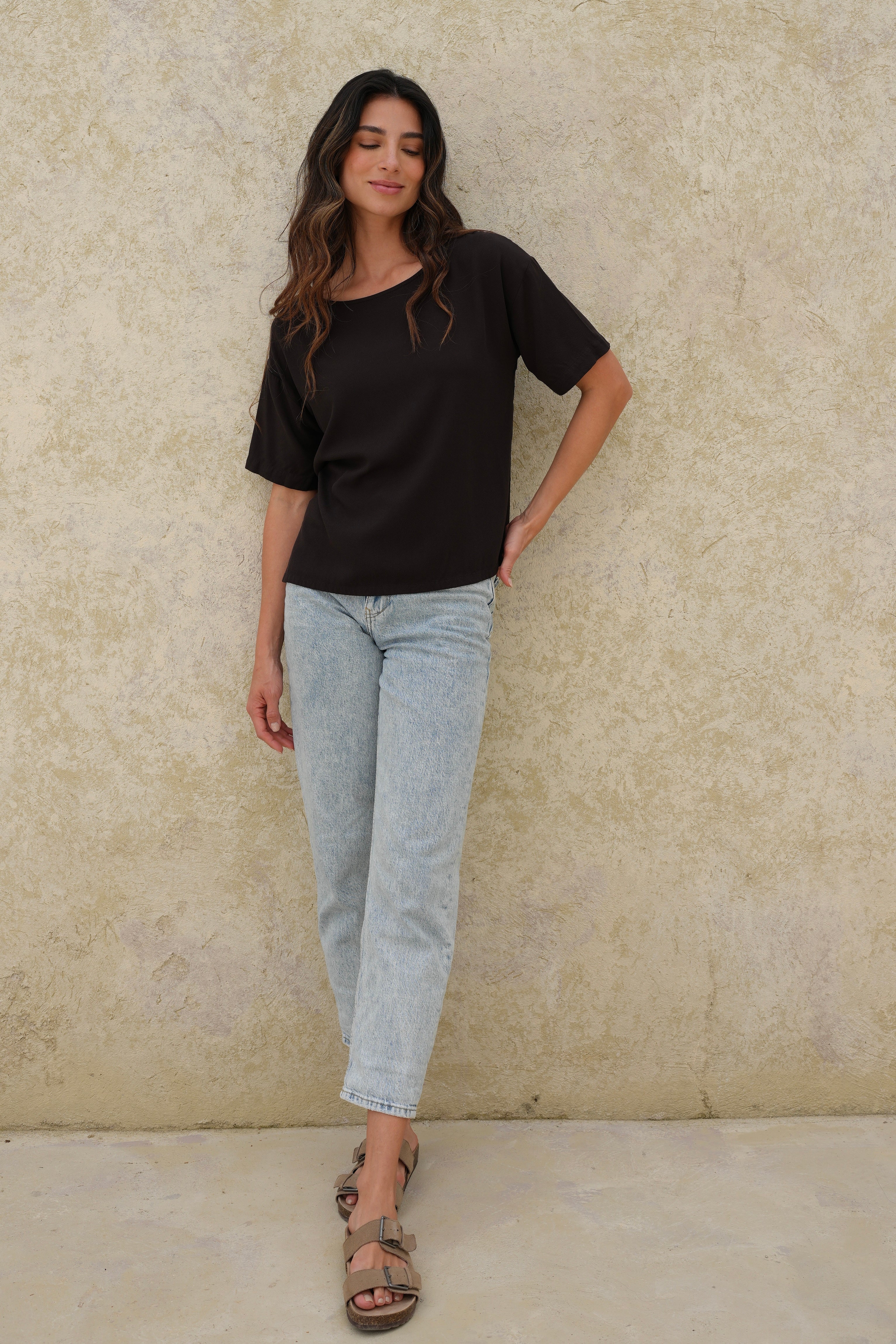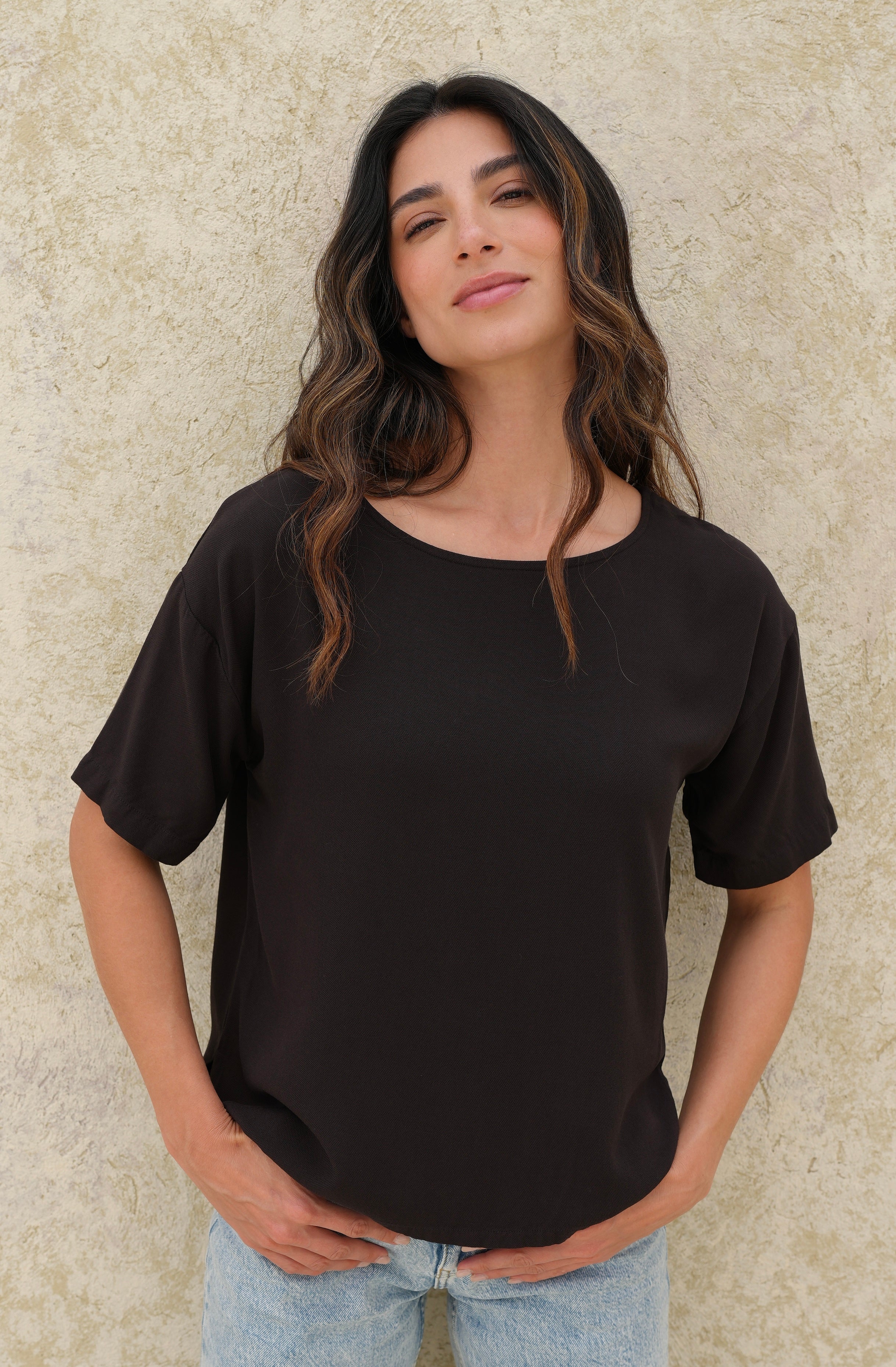 Blusa básica en CHALISMuy suave, ligera y con un acabado mate, su fibra natural permite que tu piel transpire.