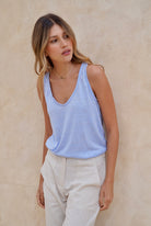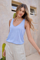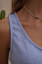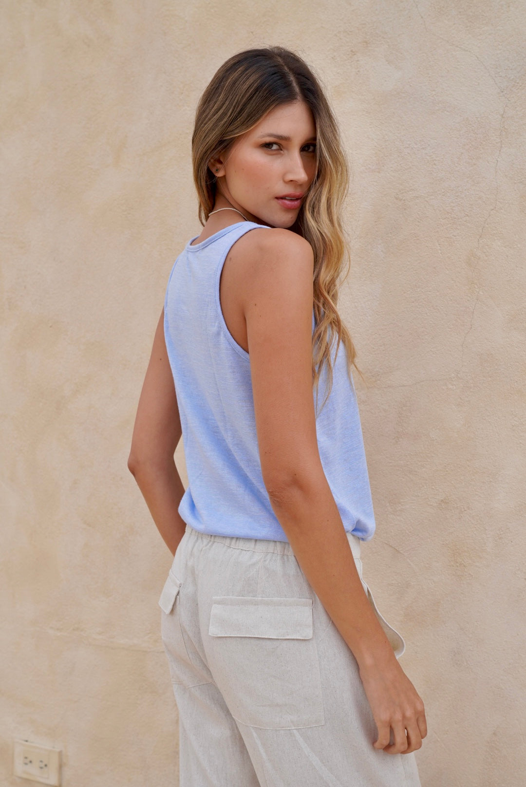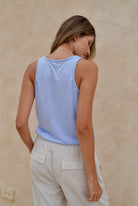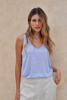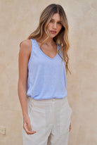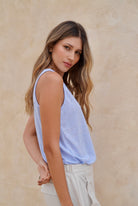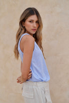 Blusa azul manga sisa en tela rayón con poliéster con elongación.