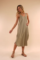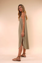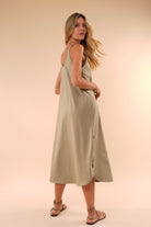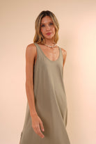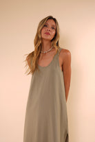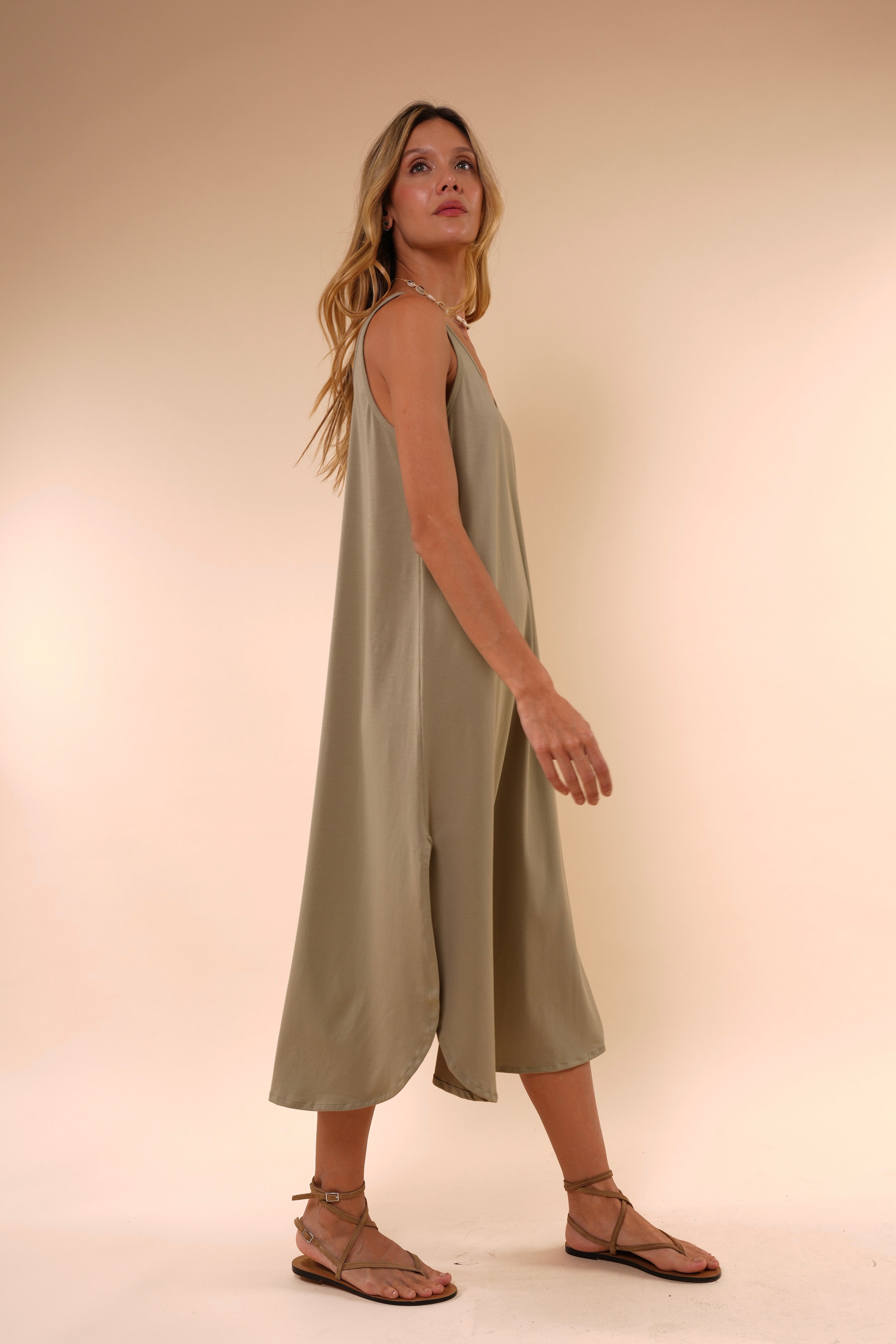 Un básico elevado que combina comodidad, movimiento y sofisticación natural. Este vestido midi de silueta amplia cae suavemente sobre el cuerpo, creando una línea limpia y favorecedora que estiliza sin marcar.
