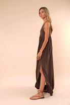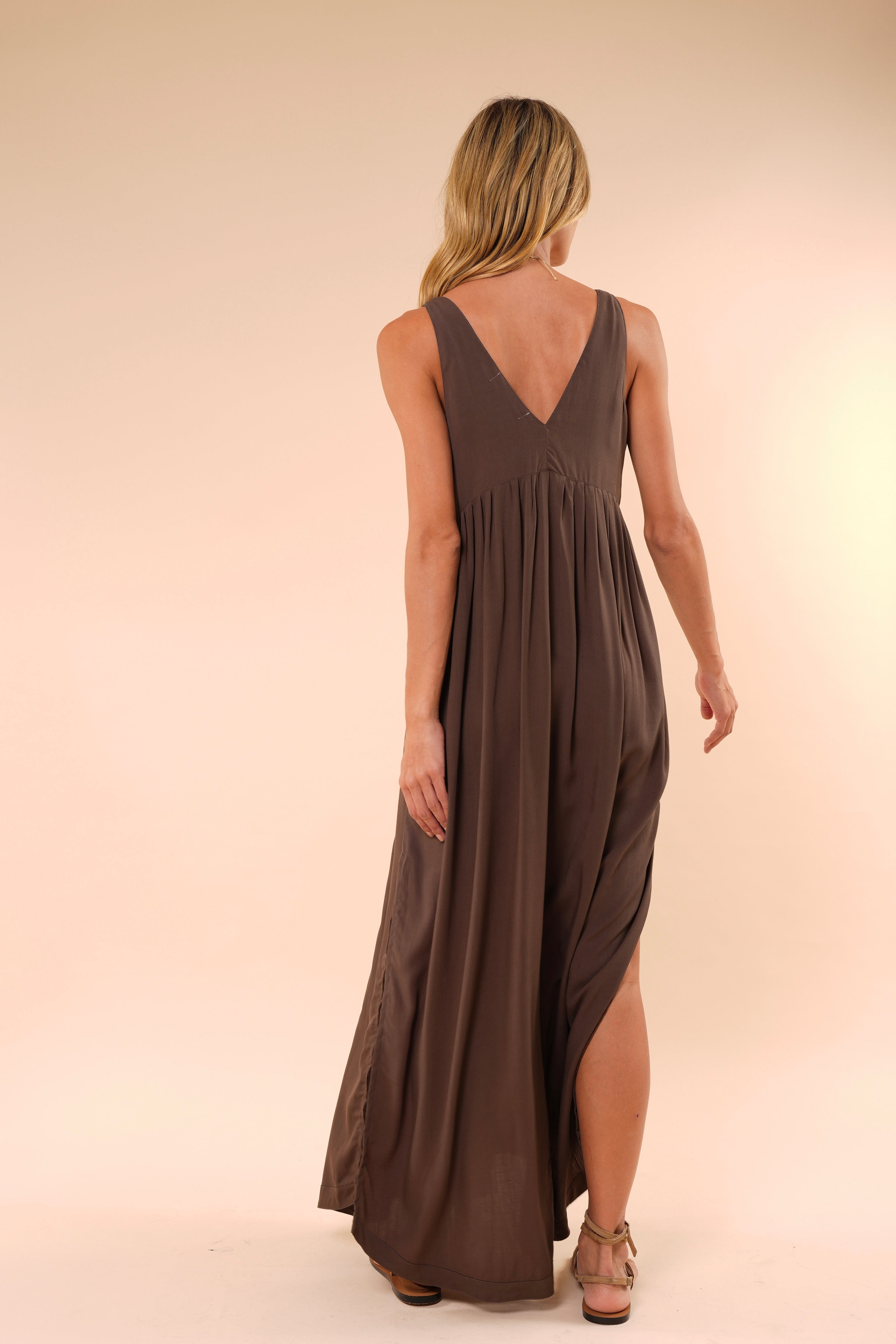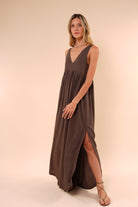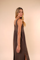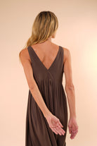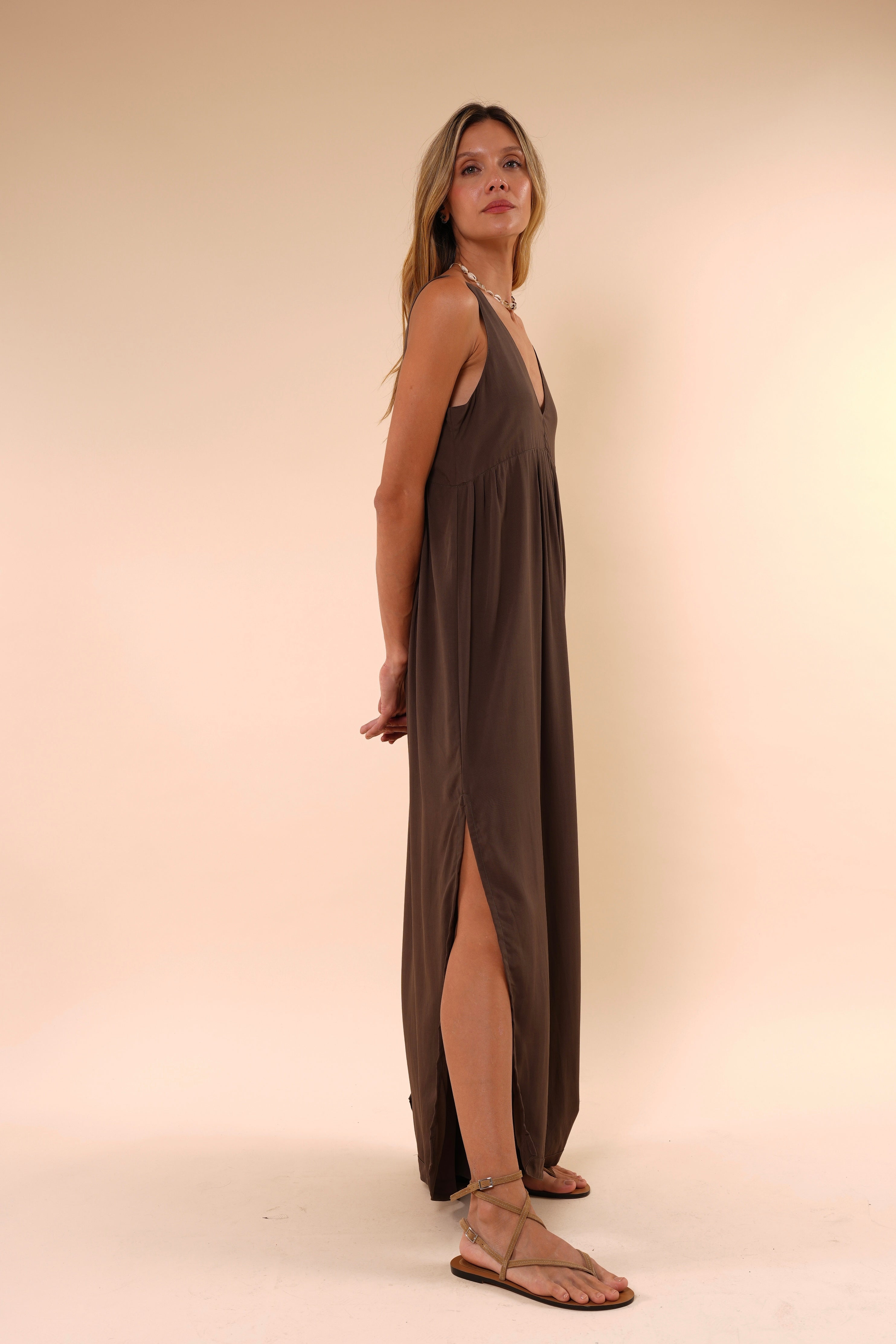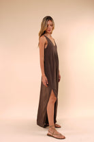 Vestido largo en tono azul lavanda combina comodidad y elegancia en una silueta amplia y favorecedora. Su escote en V estiliza el torso, mientras el corte bajo el busto aporta caída y movimiento natural. La abertura lateral sutil le da un toque femenino y versátil, perfecto para días cálidos o para elevarlo con accesorios en la noche.
