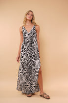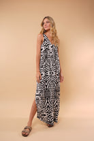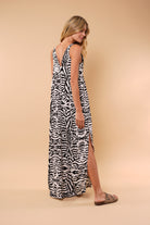 Este vestido largo destaca por su silueta etérea y movimiento natural. Confeccionado en una tela liviana y suave al tacto, cae con delicadeza desde el busto creando un efecto fluido que estiliza la figura. Su escote profundo en V realza el cuello y el escote de manera elegante, mientras que las sisas amplias aportan frescura y comodidad.