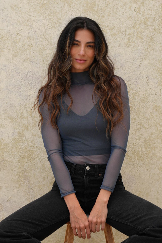 Buzo básico Indigo en malla, con elongación, fresco, versátil y se adapta a la silueta.