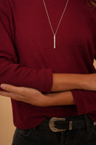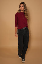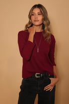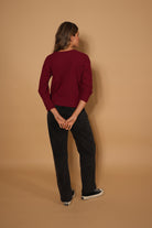 Buzo rojo cereza de cuello redondo, en  tela tejido punto liviano acanalada, de estilo casual y cómodo.