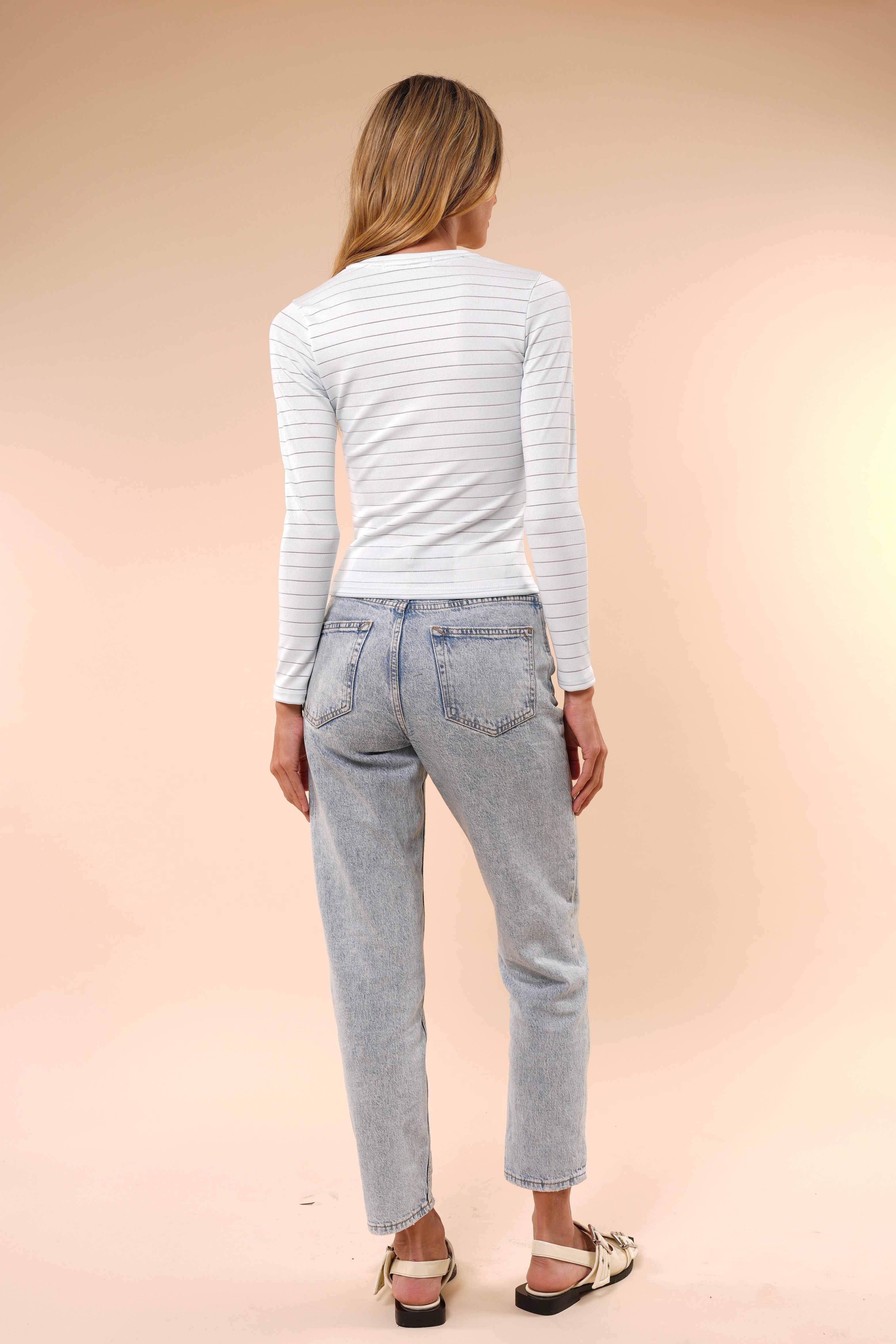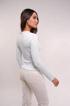 Buzo básico azul cielo, con elongación, fresco, versátil y se adapta a la silueta.