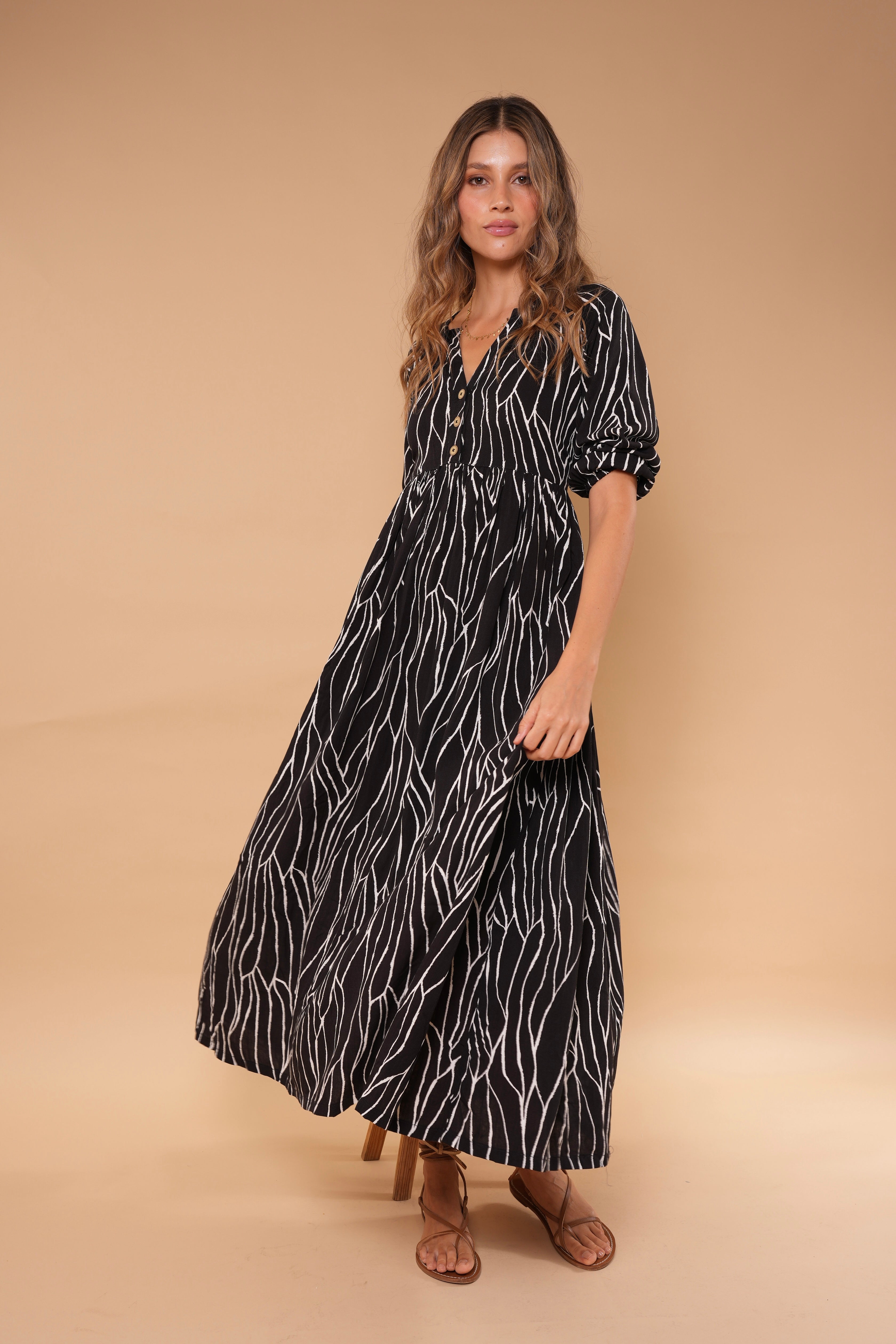 Este vestido es la pieza perfecta para quienes aman sentirse cómodas sin perder estilo. Su silueta amplia y ligera cae con movimiento natural