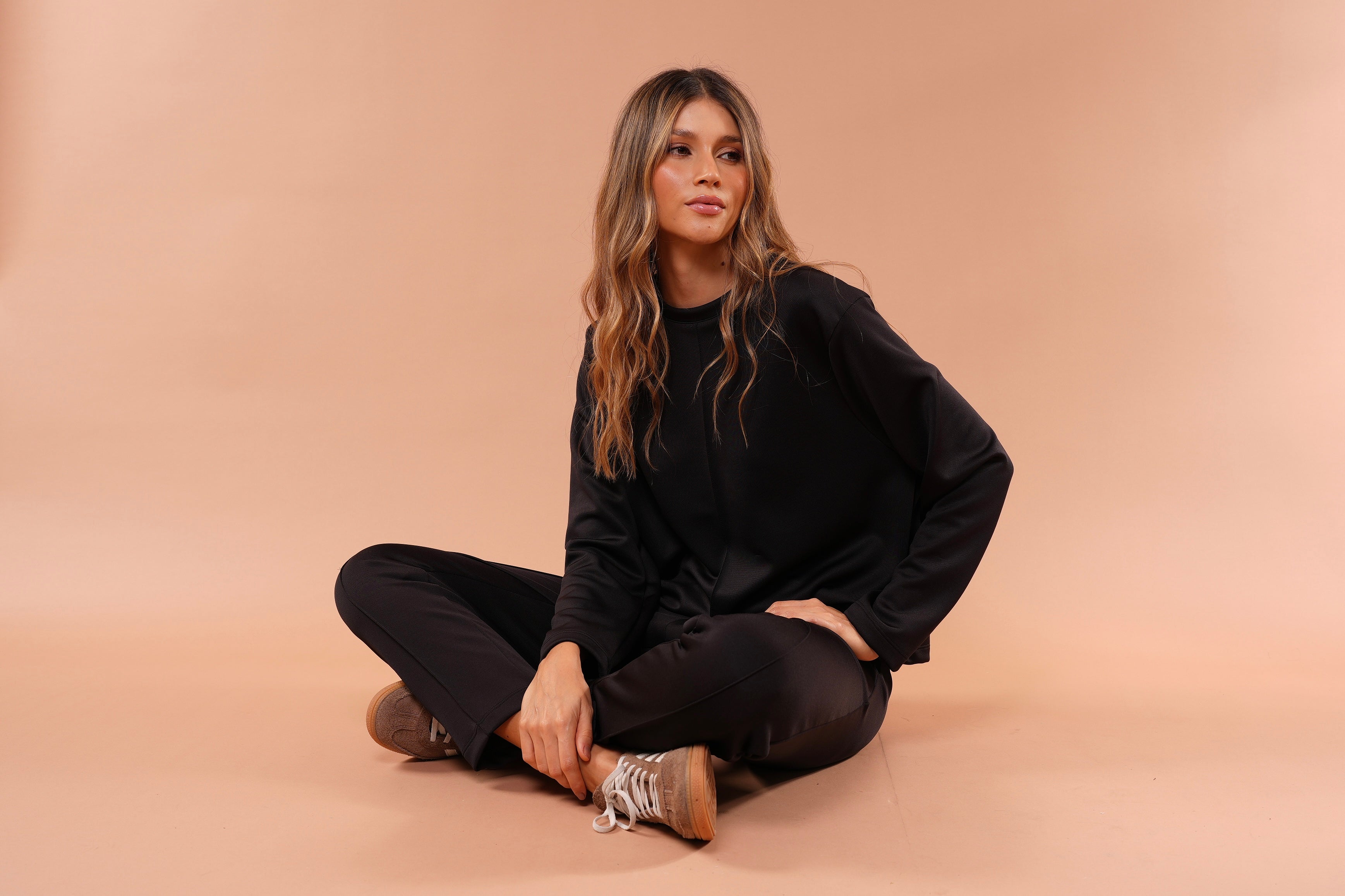 El pantalón que redefine la comodidad con elegancia. De silueta recta y líneas limpias, esta pieza estiliza la figura y alarga visualmente las piernas gracias a su corte limpio y caída perfecta.