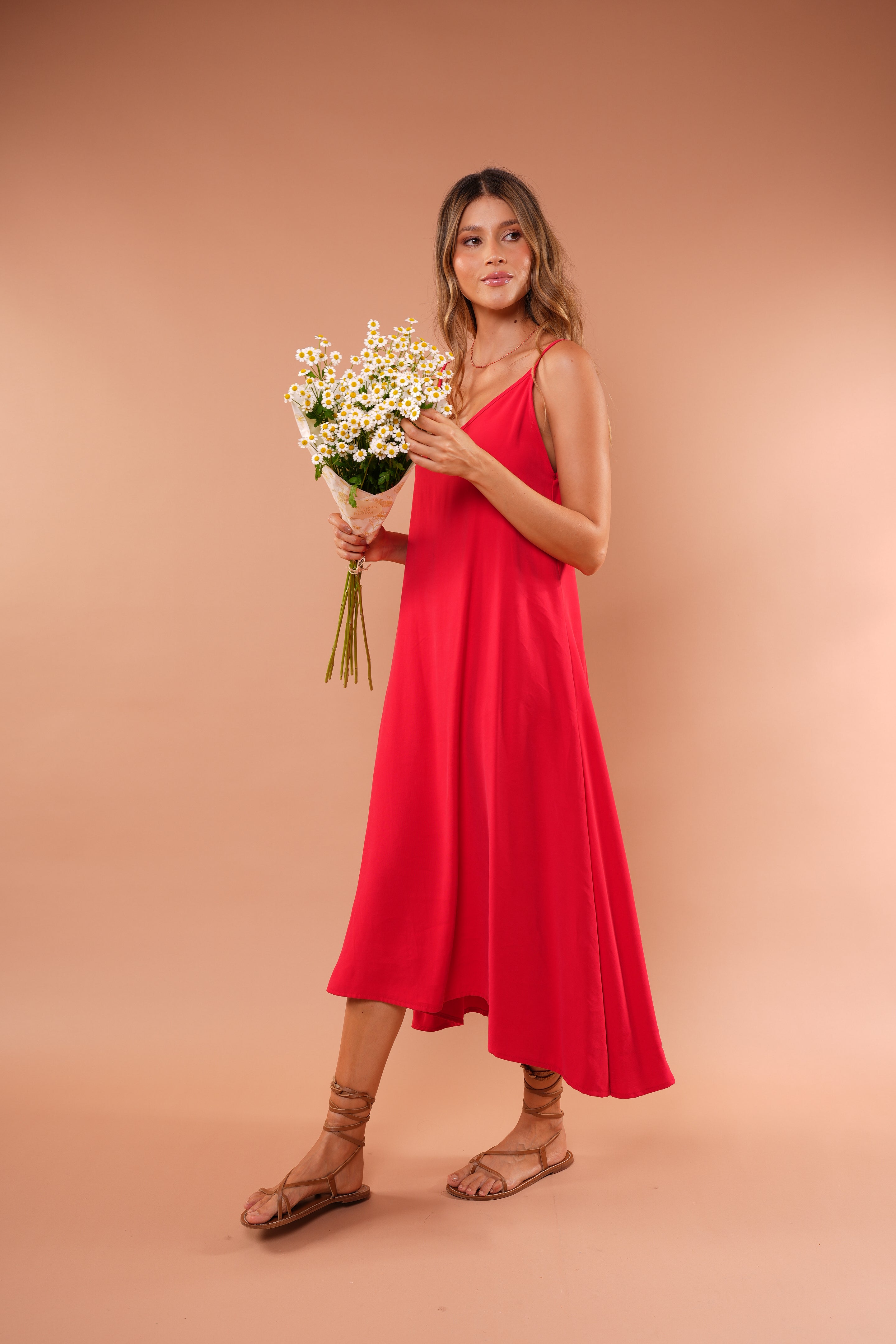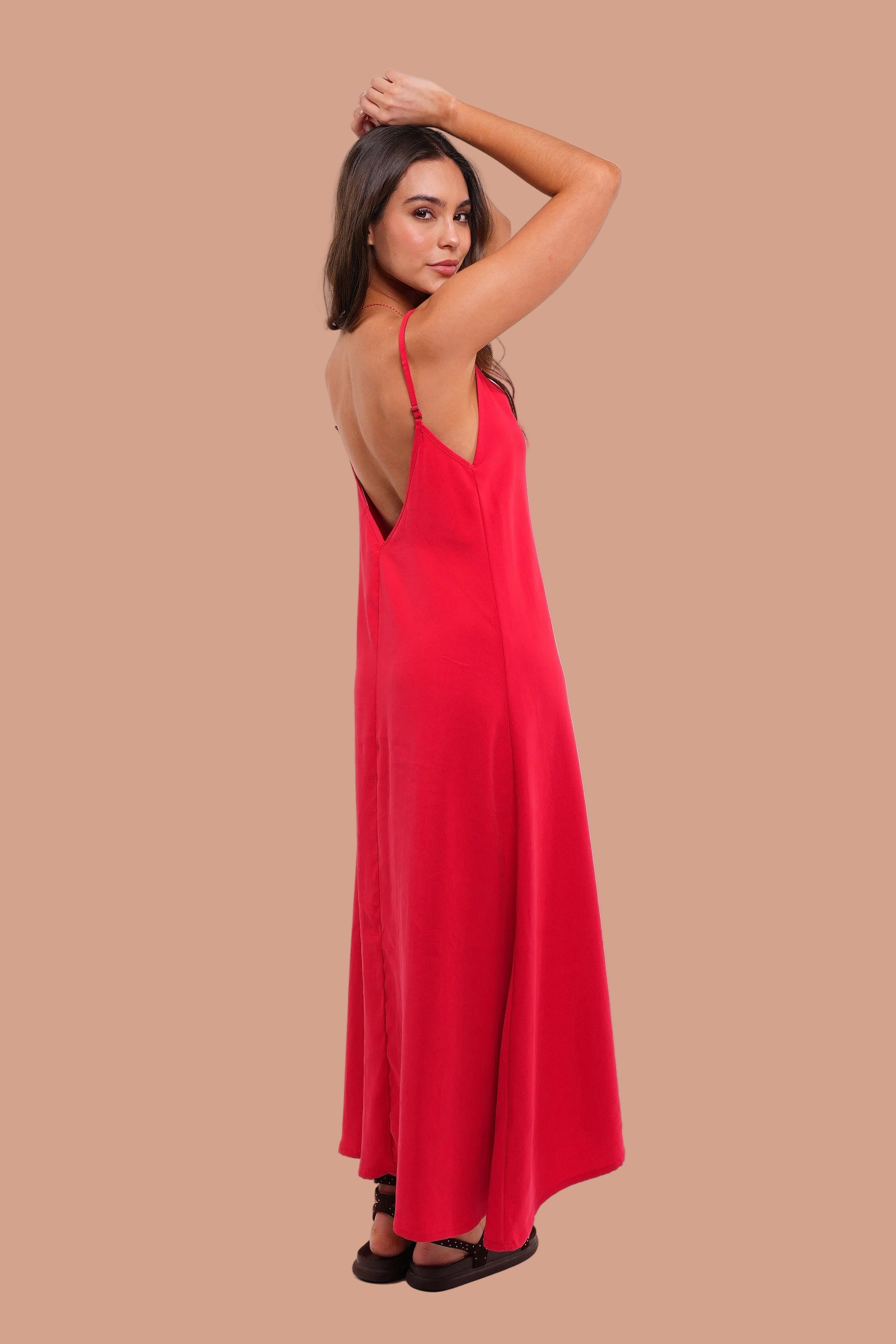 vestido en tela RAYÓN, Ligero, femenino y naturalmente elegante. Este vestido largo de silueta fluida está diseñado para acompañar el movimiento del cuerpo con suavidad y libertad.