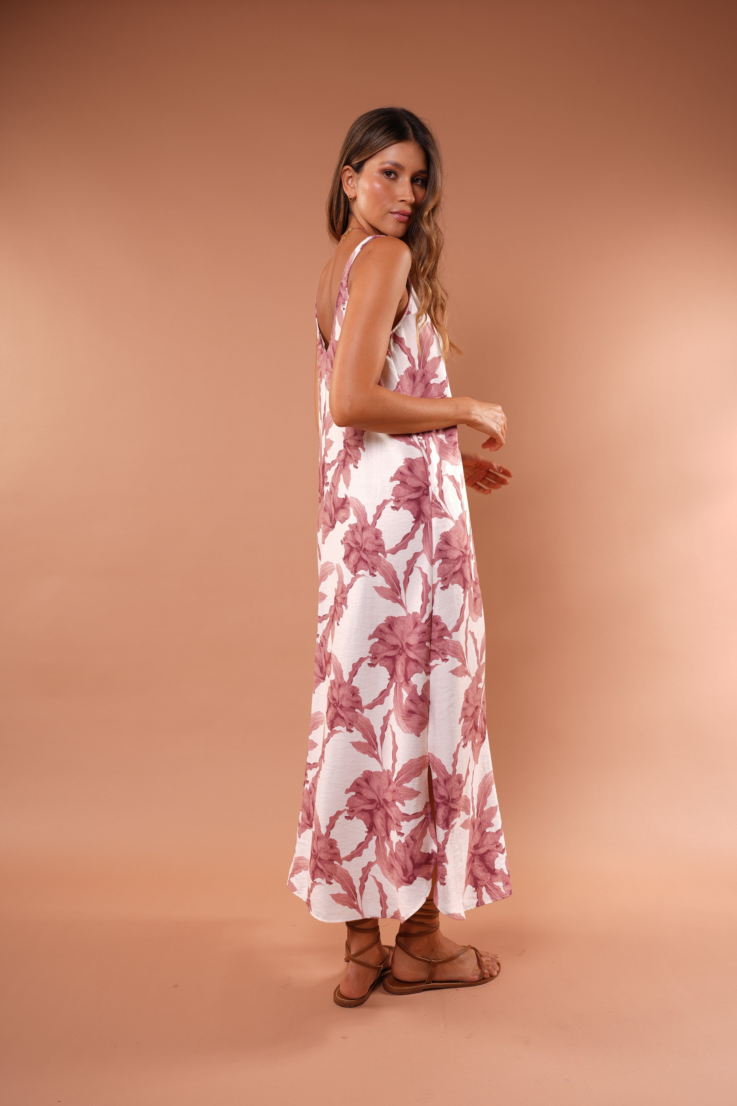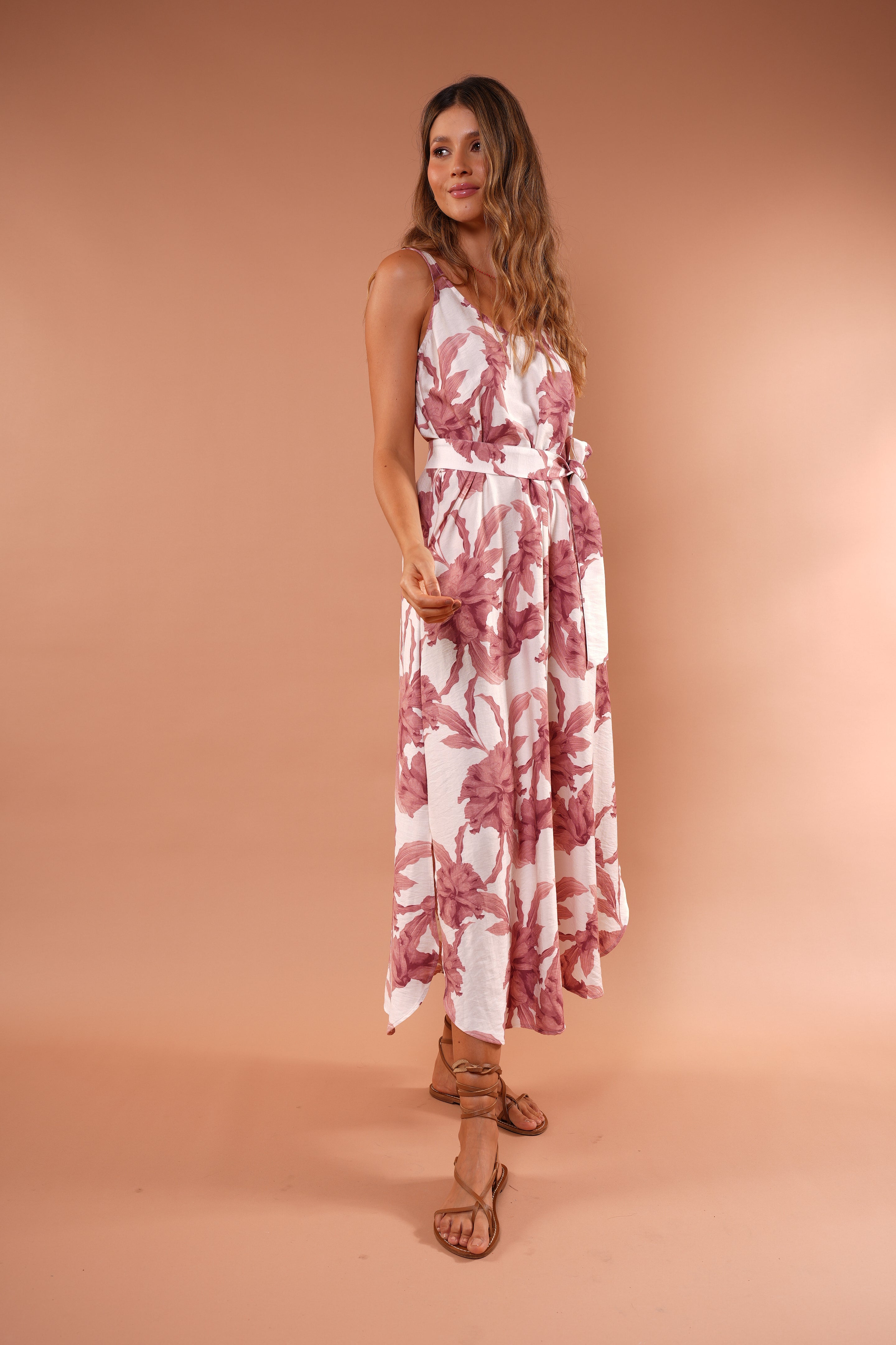 Un vestido que combina frescura y sofisticación en una silueta atemporal. Su caída ligera y fluida estiliza el cuerpo con movimiento natural, mientras el estampado floral en tonos suaves aporta un aire femenino, delicado y moderno.