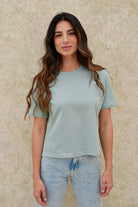 Camiseta verde menta básica de silueta relajada y manga corta, confeccionada en algodón Peruano para una sensación fresca y cómoda.