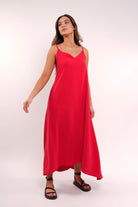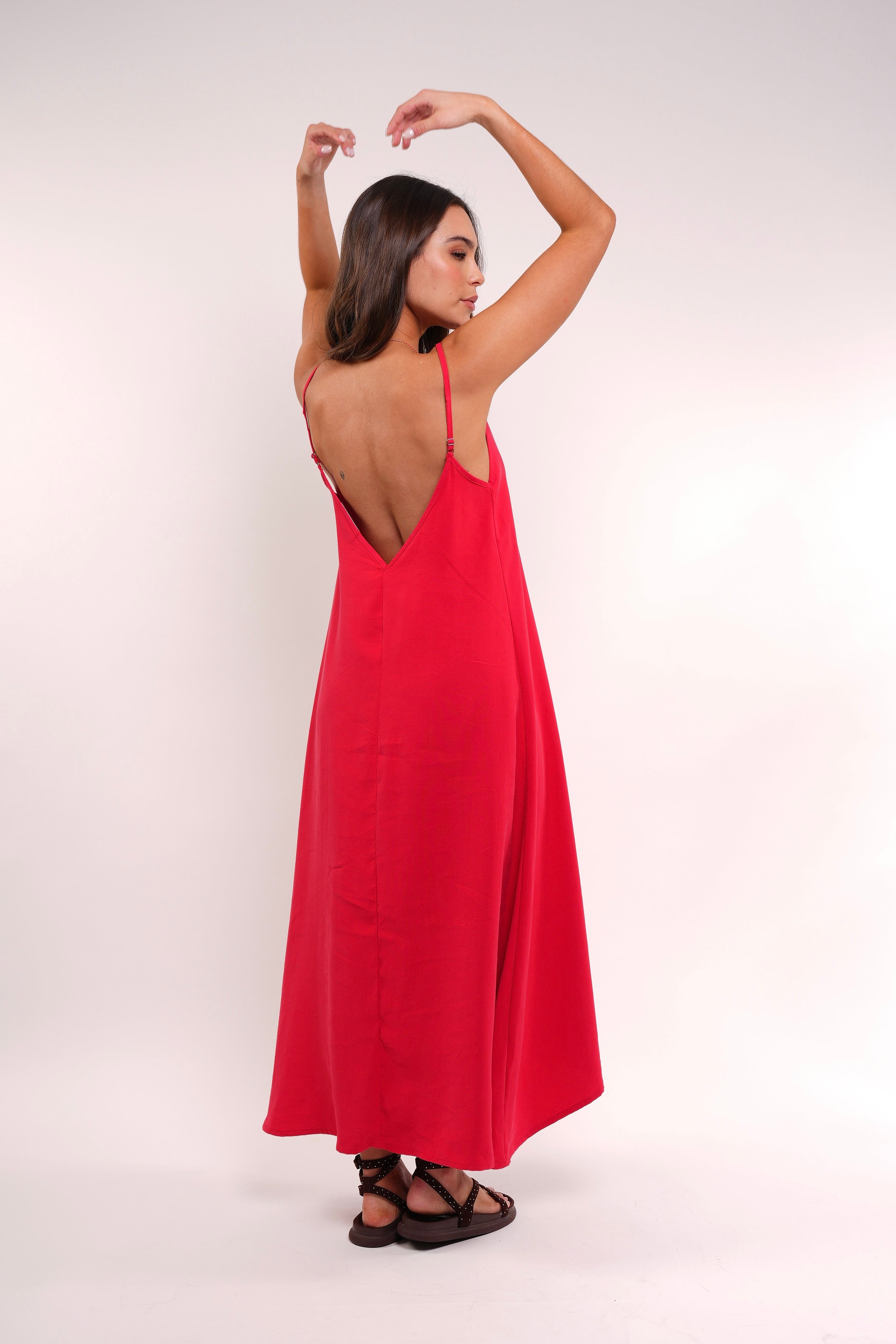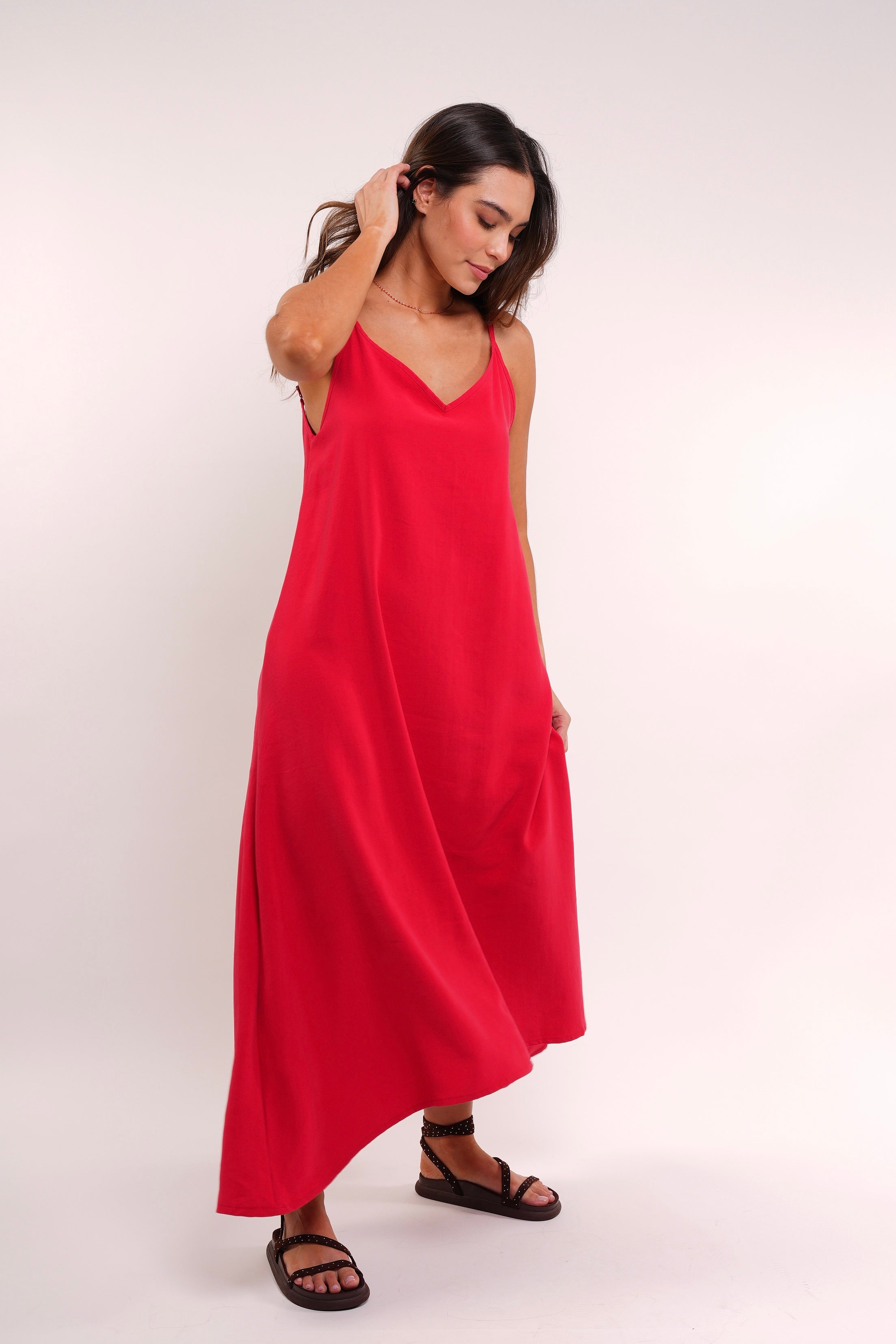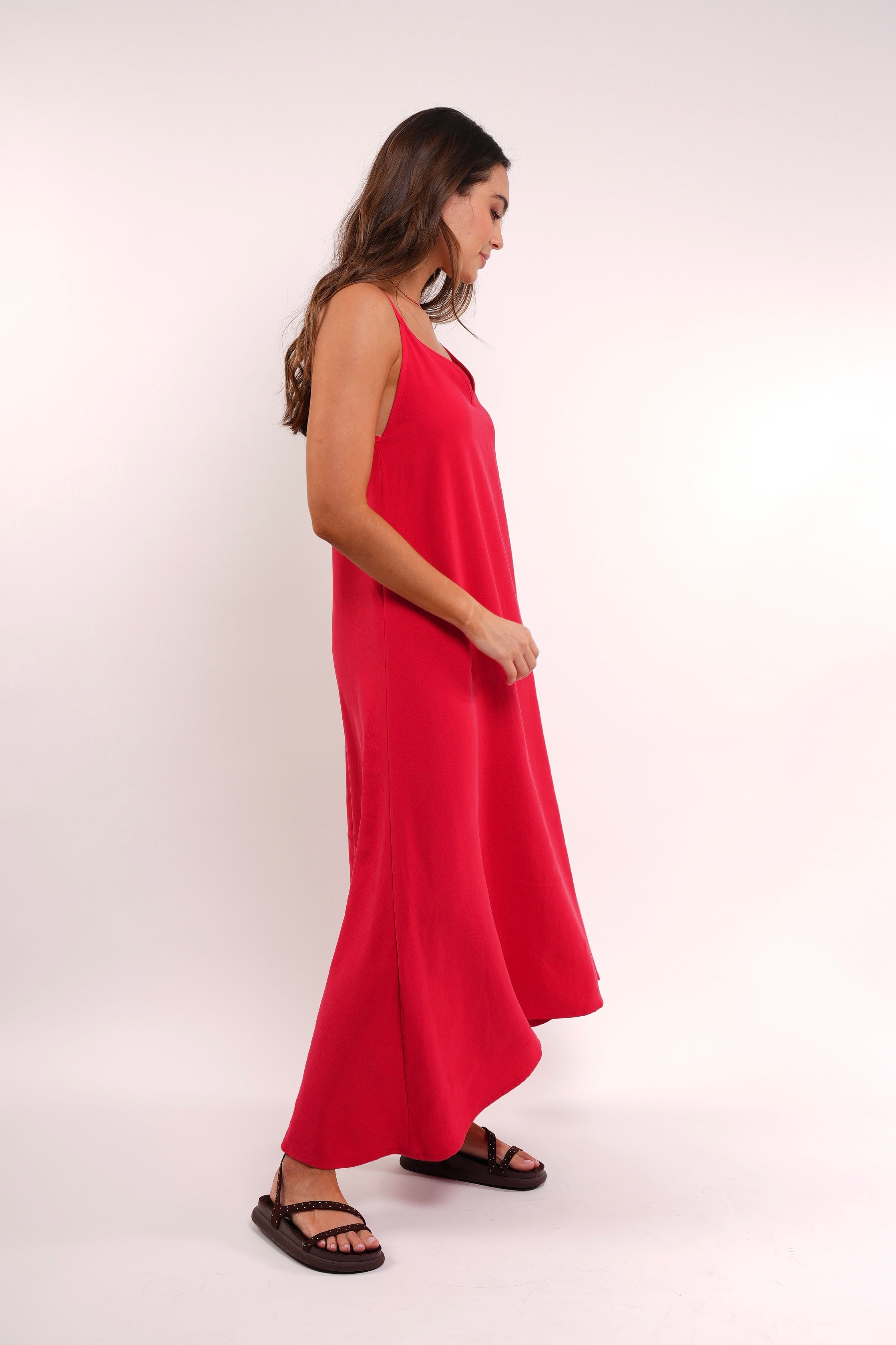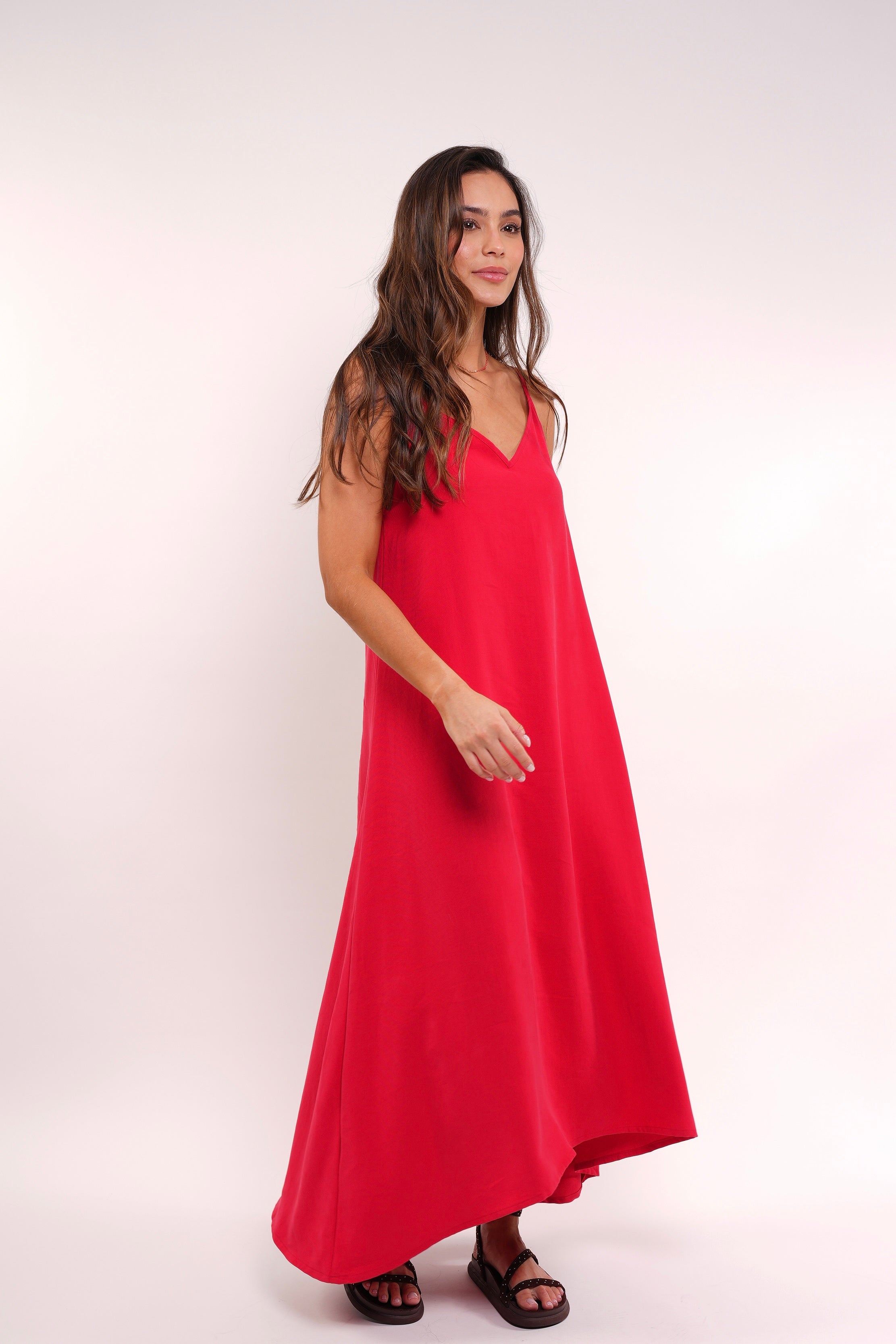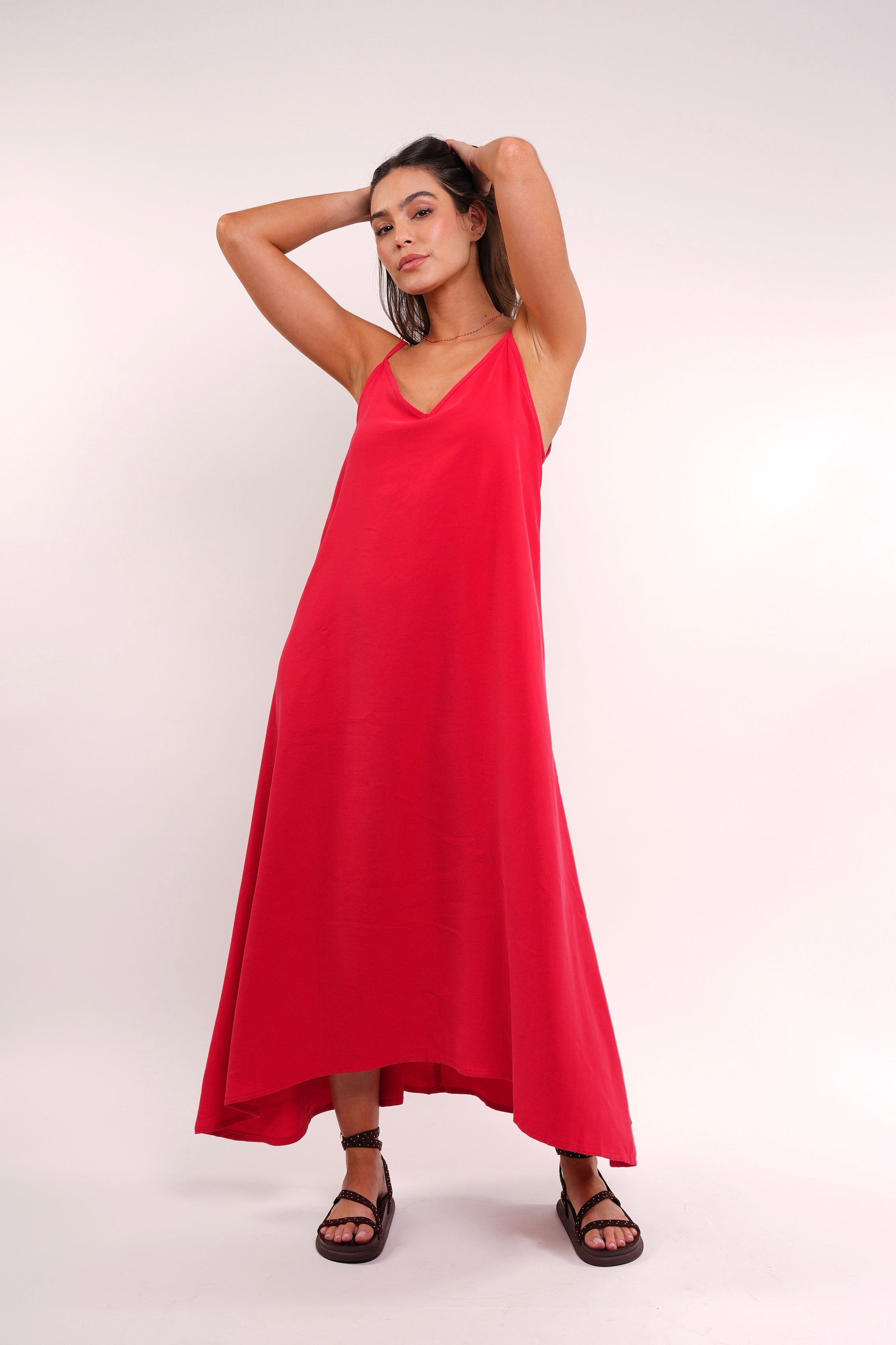 vestido en tela RAYÓN, Ligero, femenino y naturalmente elegante. Este vestido largo de silueta fluida está diseñado para acompañar el movimiento del cuerpo con suavidad y libertad.