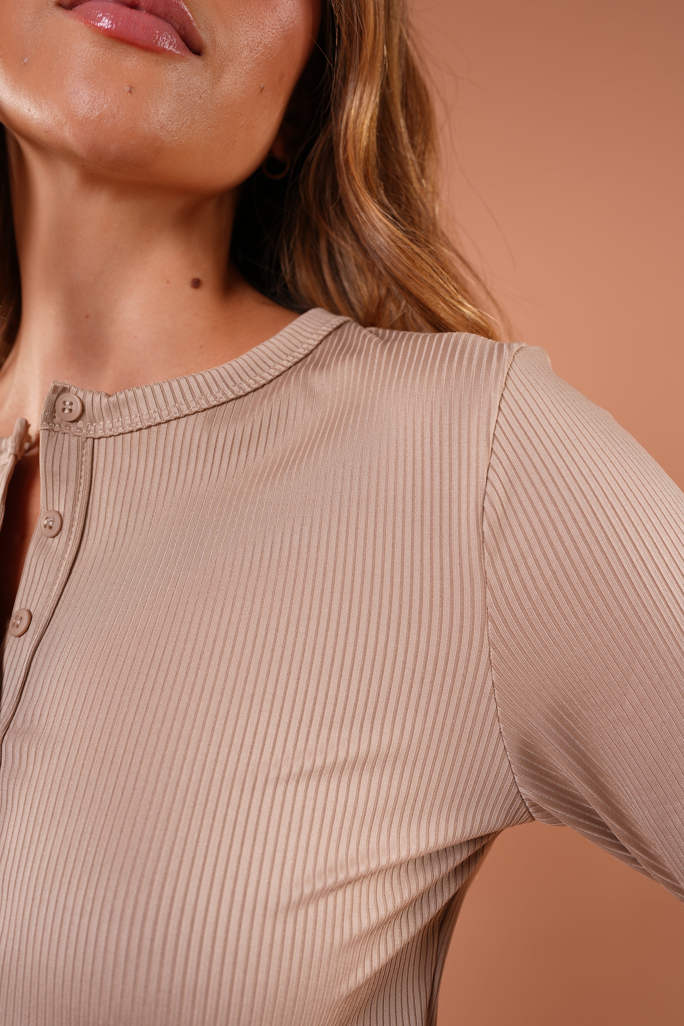 Camiseta Rib Manga Larga Taupe